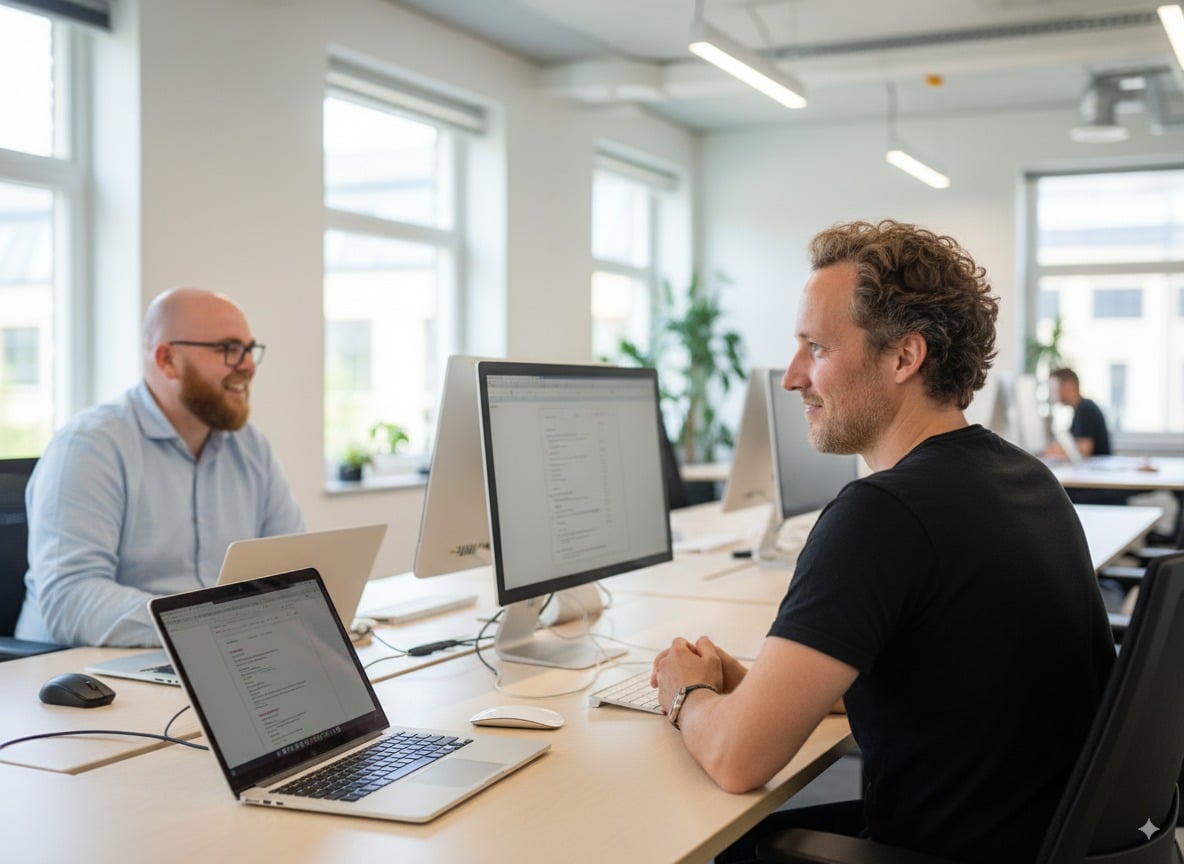 Je werkt direct met senior mensen. Geen overdrachten, geen accountmanagement, geen overhead. Wij, Jan en Jesse leiden de meeste projecten van A tot Z en schakelen onze experts bij waar nodig. Samen bouwen we digitale oplossingen voor jou alsof het ons eigen bedrijf is.